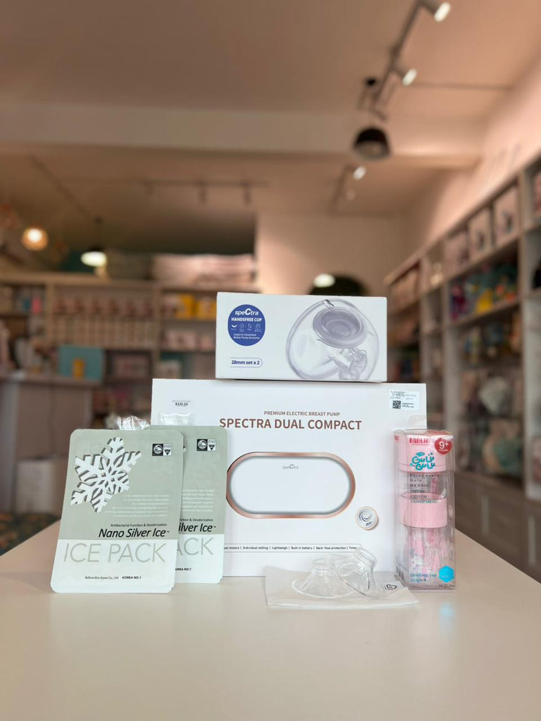 Spectra Dual Compact Portable Double Breast Pumps is an electric, portable, double breast pump for personal use that is rechargeable and can last up to 2 hours. It features a unique function that allows mommies to adjust each side independently, for a more productive and comfortable breast pumping session. Like all Spectra pumps, it features a true-closed system, creating a hygienic barrier between contaminates and our mommy's milk. The LED screen makes it easy to pump in the dark. Designed to accommodate your lifestyle. Thanks to its compact design and built-in rechargeable battery, you can pump anytime, anywhere.